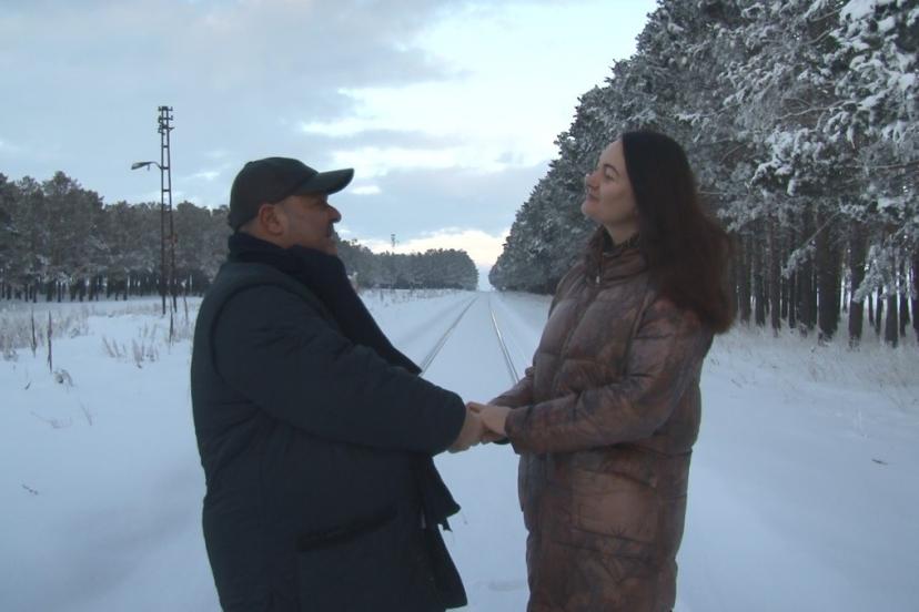 İstasyonun karla kaplı rayları ve tarihi taş binası eşliğinde rayların üzerinde Serhad Suçsuz, Katja Klimenko’ya evlilik teklifinde bulundu. Mutlulukla evlilik teklifini kabul eden Katja Klimenko, 15 yıl önce başlayan bu yolculuğun en mutlu durağına vardıklarını ifade etti.