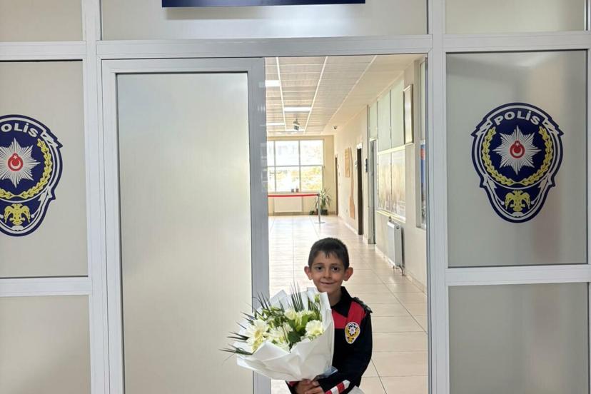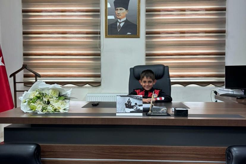 MUĞLA'nın Menteşe ilçesinde polis olma hayali kuran 7 yaşındaki Arın Taş, 23 Nisan Ulusal Egemenlik ve Çocuk Bayramı kapsamında temsili olarak Menteşe İlçe Emniyet Müdürlüğü koltuğuna oturdu.