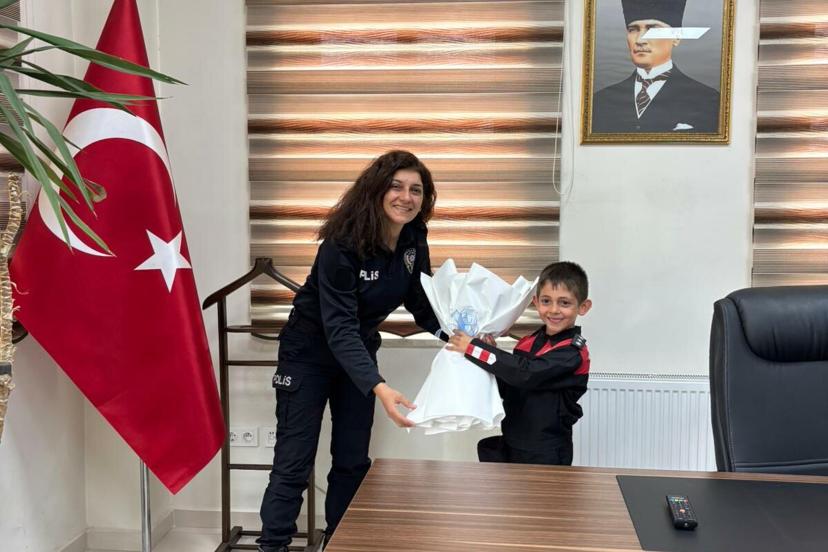 Emniyet mensupları Arın Taş ile yakından ilgilenip, çeşitli hediyeler verdi.