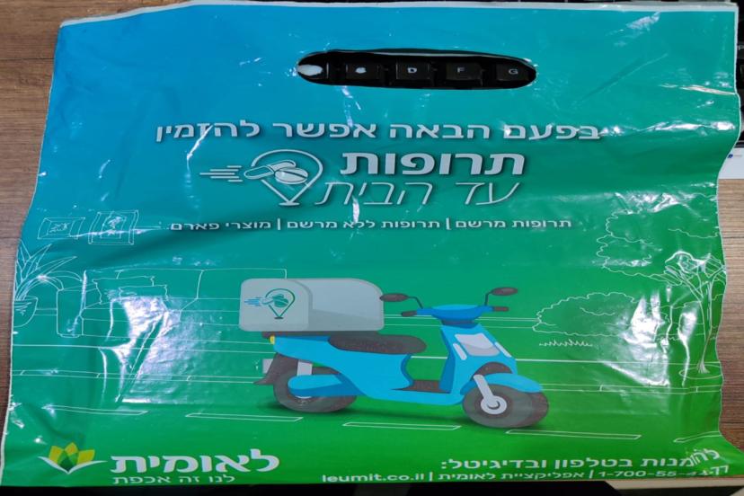 Kentte bazı esnafın müşterilere verdiği ve üzerinde İbranice, "Bir dahaki sefere ilaçları eve sipariş edebilirsiniz." ve "Eve kadar ilaç" anlamına gelen ifadelerinin yer aldığı poşetler, tepki çekti.