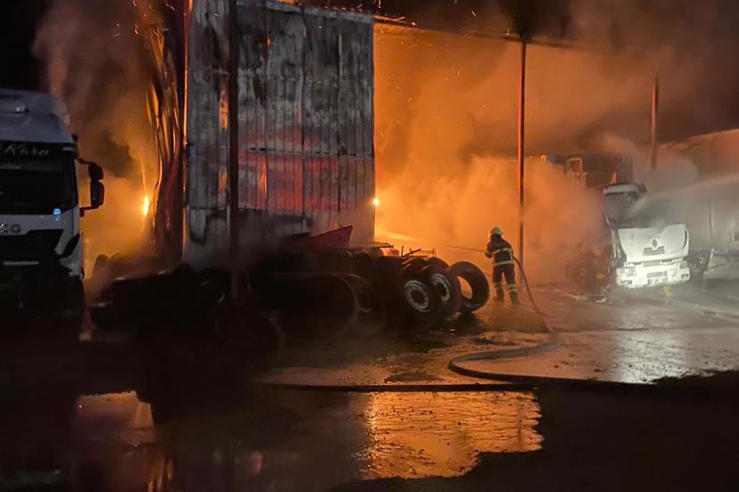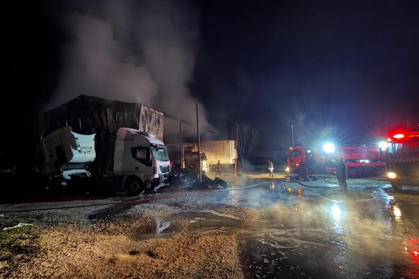 Olay, saat 04.00 sıralarında meydana geldi. Özel bir ağır vasıta servisi ve deposundan alevler yükseldiğini görenlerin haber vermesi üzerine bölgeye çok sayıda itfaiye, jandarma ve sağlık ekibi sevk edildi. İtfaiye ekiplerinin yoğun çalışması sonucu yangın, çevredeki diğer işletmelere sıçramadan söndürüldü. Sebebi henüz belirlenemeyen yangın sonucunda işletmenin ofis ve yedek parça deposu tamamen yanarak kullanılamaz hale geldi. Servis içerisinde bakımı yapılan veya bekletilen 2 çekici, kamyon ve dorsede ise büyük çapta maddi hasar meydana geldi. Jandarma yangının çıkış sebebinin belirlenmesi amacıyla geniş çaplı soruşturma başlattı.