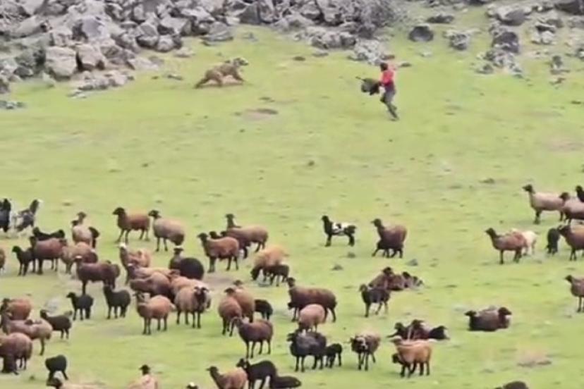 Ayıyı gören çobanlar kısa süreli bir panik yaşayarak bölgeden ayıya bağırarak korkutmaya çalıştı. Beklenenin aksine boz ayı ne koyun sürüsüne ne de insanlara yöneldi. Hızlı adımlarla sürünün yanından geçen ayı, kayalık bölgeye doğru koşarak gözden kayboldu.