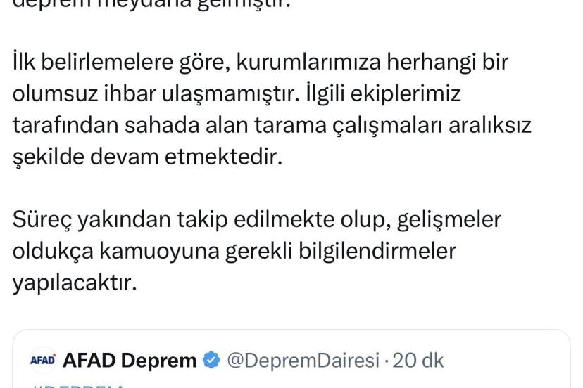 Ağrı’nın Patnos ilçesinde saat 17.17’de 4,3 büyüklüğünde bir deprem meydana geldi. Ağrı Valiliğince yapılan açıklamada, ilk belirlemelere göre ilgili kurumlara herhangi bir olumsuz ihbar ulaşmadığı belirtildi. Depremin ardından ekiplerin sahada alan tarama çalışmalarına aralıksız şekilde devam ettiği ifade edildi.