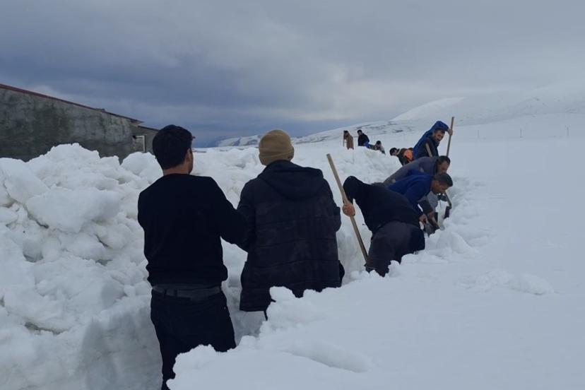 Köy sakinleri bir araya gelerek küreklerle kar tabakasını yarıp suyun kontrollü şekilde akabileceği kanallar açtı.
