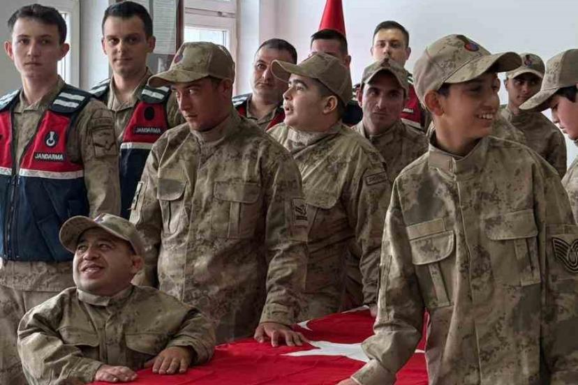 Ağrı’nın Taşlıçay ilçesinde düzenlenen etkinlikte özel bireyler bir günlüğüne temsili askerlik yaparak unutulmaz bir gün yaşadı.