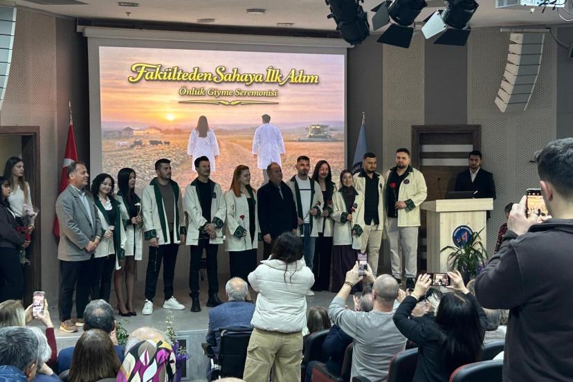 'Akdeniz Ziraat Sahada' sloganıyla düzenlenen uğurlama töreninde, uygulamalı eğitime katılacak öğrencilere önlükleri giydirildi. Program kapsamında, fakültenin kurucu dekanı Prof. Dr. Narin Ünal’a teşekkür plaketi takdim edildi. Plaketi, Prof. Dr. Tuncer Karpuzoğlu Organ Nakli ve İleri Sağlık Araştırmaları Enstitüsü Müdürü Prof. Dr. Ömer Özkan verdi.