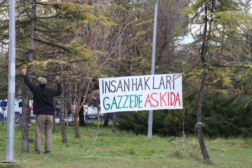 Gazze Nöbeti Grubu, Ankara’da ABD Büyükelçiliği önünde Gazze’ye yönelik saldırılar ile ABD’nin işgal politikalarına verdiği desteği protesto etti. Grup, Gazze ablukası sona erene kadar her hafta cuma günü nöbetlerini sürdüreceklerini belirtti.