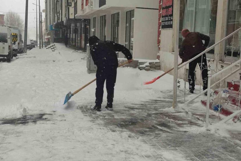 Gece saatlerinde etkili olan kar yağışının ardından sabahın erken saatlerinde cadde ve sokaklar beyaza büründü. Kent merkezinde kar kalınlığının artmasıyla birlikte esnaf, işyerlerinin önünde biriken karı temizlemek için harekete geçti.