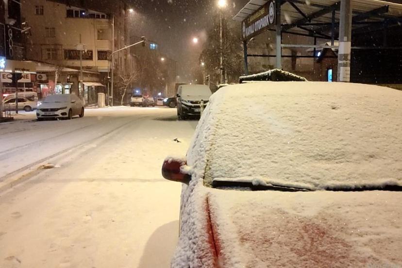 Ardahan’da gün boyunca etkili olan soğuk havanın ardından akşam saatlerinde kar yağışı başladı. Zaman zaman lapa lapa yağan kar ile birlikte, binaların çatıları, araçların üst kısımları beyaza büründü.