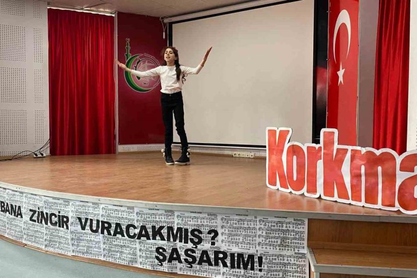 Program kapsamında öğrenciler tarafından hazırlanan çeşitli etkinlikler sahnelendi. Ortaokullar arasında düzenlenen İstiklal Marşı’nı Güzel Okuma Yarışmasında 1’inci olan Melikköy Ortaokulu 5. sınıf öğrencisi Asmin Asya Top, İstiklal Marşı’nı duygu dolu bir şekilde okuyarak salondaki katılımcılardan büyük alkış aldı.