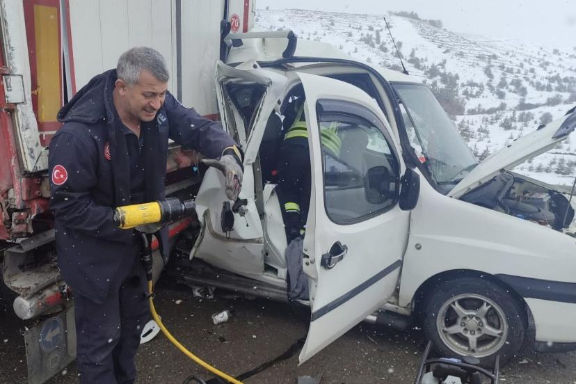 Edinilen bilgilere göre aynı güzergâhta seyir halinde olan hafif ticari araç, önünde ilerleyen tıra arkadan çarptı. Çarpmanın etkisiyle savrulan araç, tırın altına girerken, tırın otomobili bir süre sürüklediği öğrenildi. Kazanın şiddetiyle aracın arka kısmı büyük hasar aldı.
