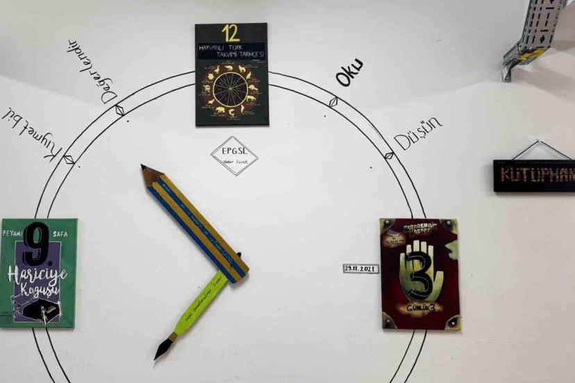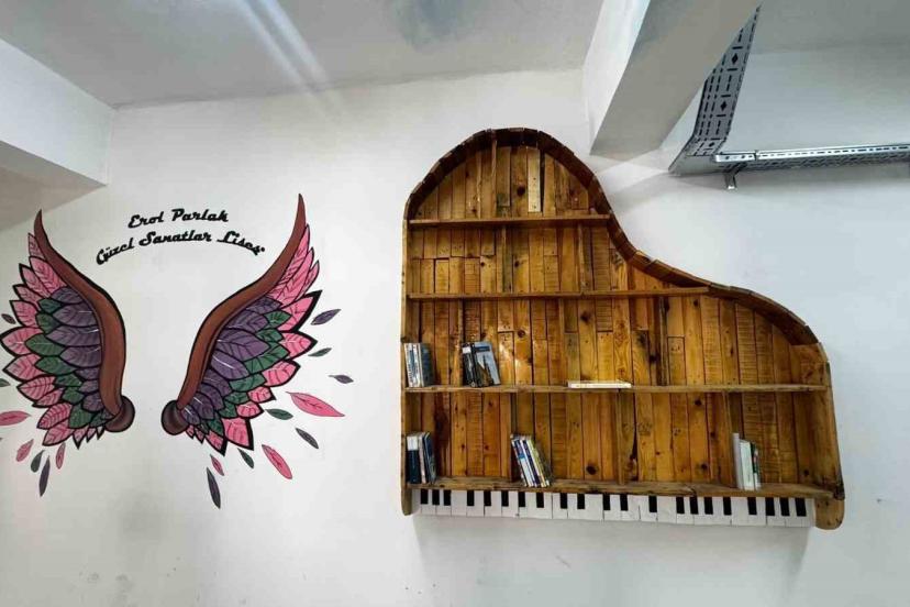 Kaya ayrıca kütüphanede yer alan tüm görsel çalışmaların öğrenciler tarafından yapıldığını belirterek, "Duvarlardaki resimlerden üç boyutlu tasarımlara kadar tüm çalışmalar görsel sanatlar dersleri kapsamında öğrencilerimizin emeğiyle ortaya çıktı. Grafik tasarımdan üç boyutlu sanat eğitimine kadar birçok dersimizi bu kütüphanede işleyebiliyoruz" şeklinde konuştu.
