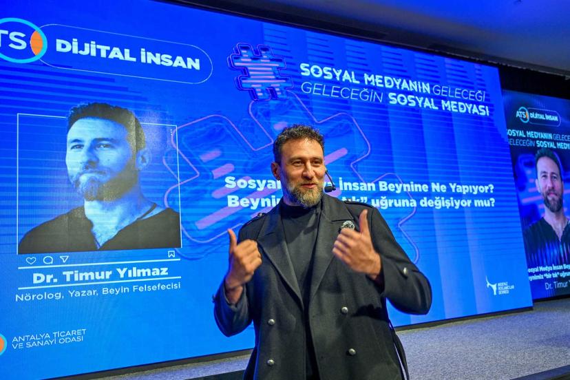 ATSO ile Akdeniz Reklamcılar Derneği (ARD) iş birliğinde, Antalya'da dijital çağın insan üzerindeki etkileri ile sosyal medyanın geleceğinin ele alındığı 'Dijital İnsan Sosyal Medyanın Geleceği - Geleceğin Sosyal Medyası' başlıklı fikir zirvesi gerçekleştirildi. ATSO Atatürk Konferans Salonu'nda düzenlenen zirvede; sosyal medyanın bireysel ve toplumsal etkileri, dijitalleşmenin iletişim biçimlerini nasıl dönüştürdüğü, algı yönetimi, yapay zekâ ve insan psikolojisi gibi başlıklar farklı disiplinler üzerinden ele alındı.