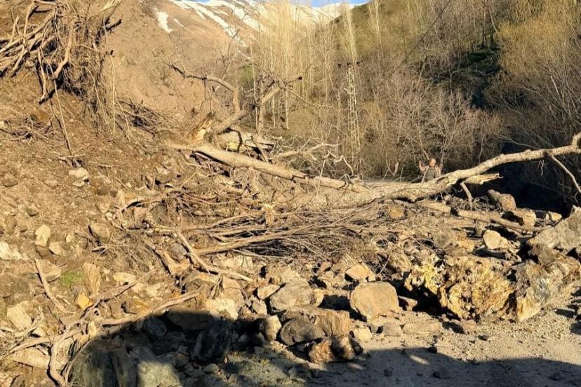 Van’ın Bahçesaray ilçesinde mahalle yoluna dökülen heyelan temizlendi.