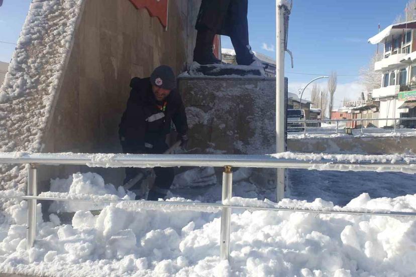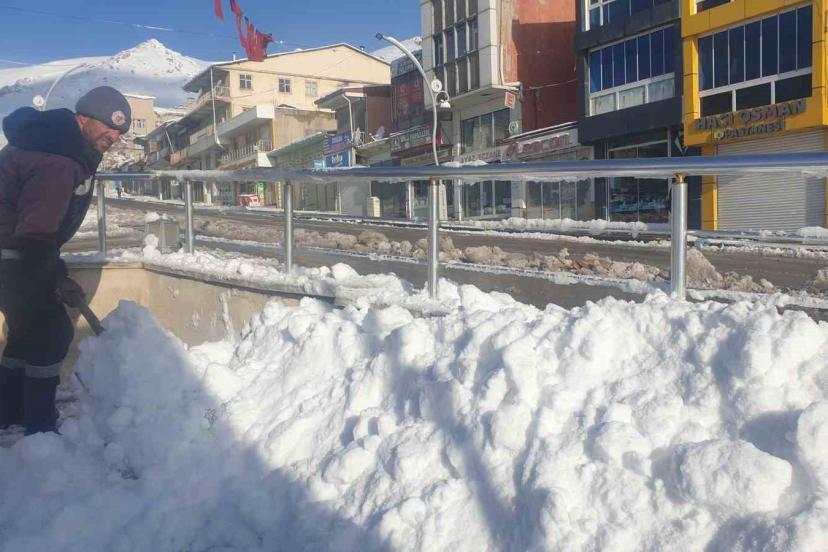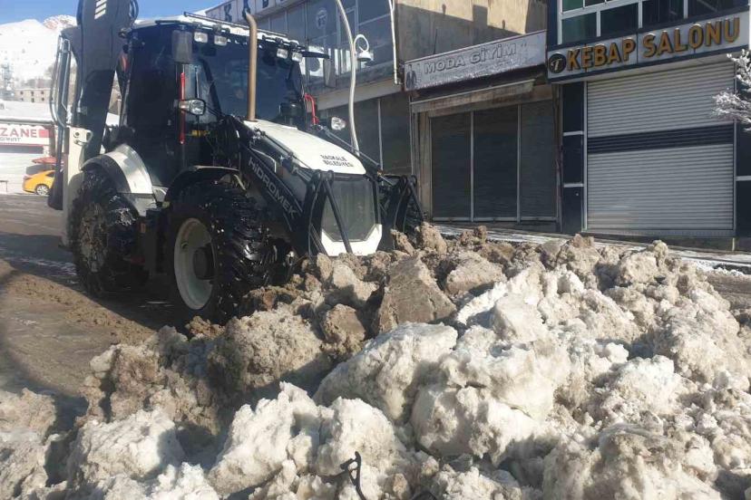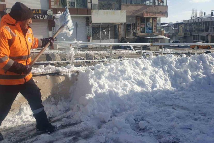 Mahallelerde ve çarşı merkezinde belediye ekipleri yollarda kar temizleme çalışması yürüttü.