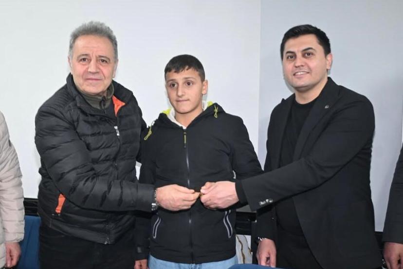 Programın ardından Başkan Muammer Yiğider, Erzurum’da düzenlenen Okul Sporları Yıldızlar Serbest Güreş müsabakasında İl Birincisi olan Samet Polat’ı tebrik ederek hediyesini takdim etti.