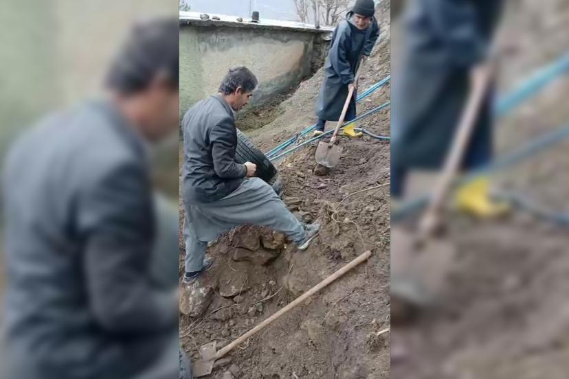 Lastiklerin içini toprakla doldurarak sabitleyen mahalleli, böylece hem kaymayı önledi hem de daha güvenli bir geçiş yolu oluşturdu.