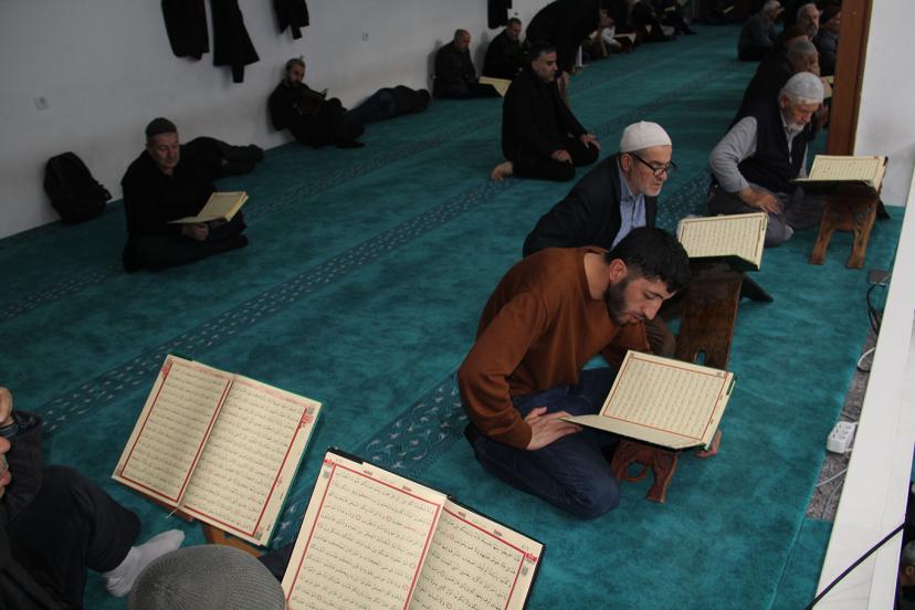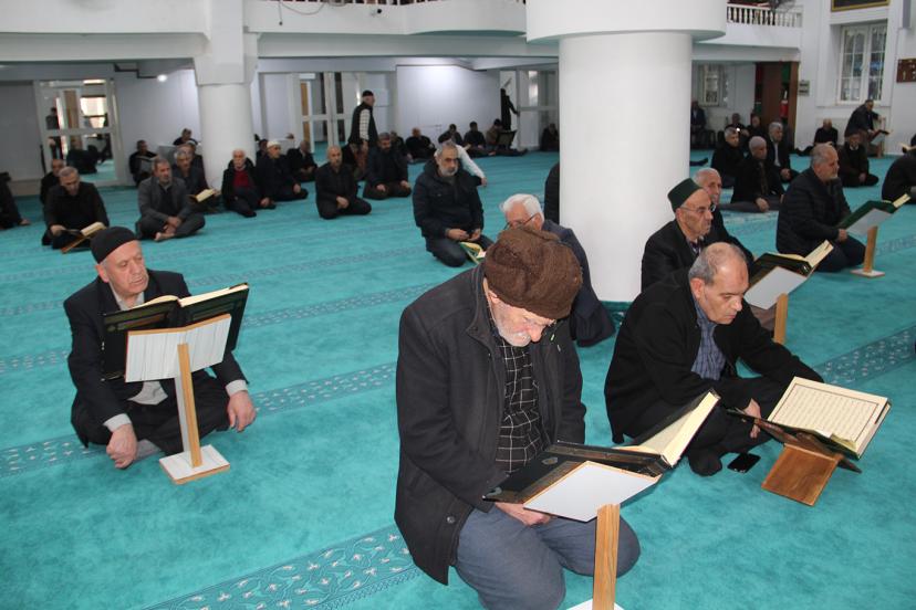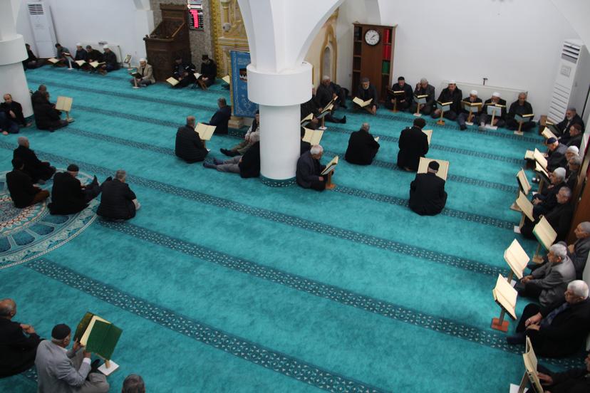 Camilerde imamlar ve hafızlar Kur'an'ı Kerim'i sesli olarak tilavet ederken, cemaat ise okunan cüzü Mushaf'tan takip ediyor.