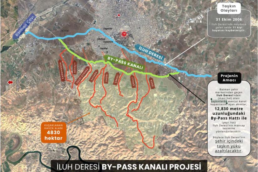 İluh Deresi başta olmak üzere şehir merkezinden geçen dere yataklarında yaşanan taşkınların önlenmesi amacıyla hazırlanan proje kapsamında, alternatif bir su tahliye hattı oluşturulacak. “İluh by-pass hattı” olarak da adlandırılan kuşaklama kanalıyla, yağışlarda oluşan suyun yerleşim alanlarına ulaşmadan Batman Çayı’na yönlendirilmesi hedefleniyor.