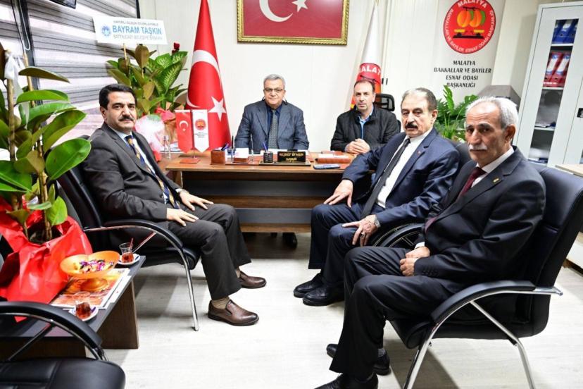 Battalgazi Belediye Başkanı Bayram Taşkın; Malatya Şoförler ve Otomobilciler Esnaf Odası Başkanı Şevket Keskin, Minibüsçüler Odası Başkanı Mesut İnce, Bakkallar ve Bayiler Esnaf Odası Başkanı Nejdet Özyalın, Lokantacılar Esnaf Odası başkanı Murat Keskin, Kasaplar Esnaf Odası Başkanı Yusuf Küçer, Zahireciler Esnaf Odası Başkanı Bülent Artun, Yeşiltepe Esnaf ve Sanatkarlar Odası Başkanı Tevabil Polat, Malatya Madeni Eşya Esnaf ve Sanatkârlar Odası Başkanı İzzet Demirci, Malatya Berberler ve Kuaförler Esnaf ve Sanatkarlar Odası Başkanı Ramazan Toptaş, Kahveciler Esnaf Odası Başkanı Hacı Karanfil, Terziler Esnaf Odası Başkanı Cumali Savaş, Elektrikçiler Esnaf Odası Başkanı İbrahim Karabulut, Attarlar Esnaf Odası Başkanı Hasan Basri Orhan ve Fırıncılar Esnaf Odası Başkanı Mehmet Büyükelçi’yi ziyaret ederek, yeni dönem görevlerinde başarılar diledi.