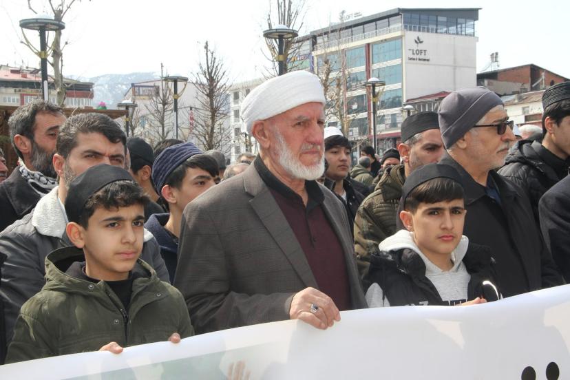 Peygamber Sevdalıları Vakfı ve İTTİHADUL ULEMA öncülüğünde gerçekleştirilen basın açıklamasını topluluk adına Şefik Börü okudu.
