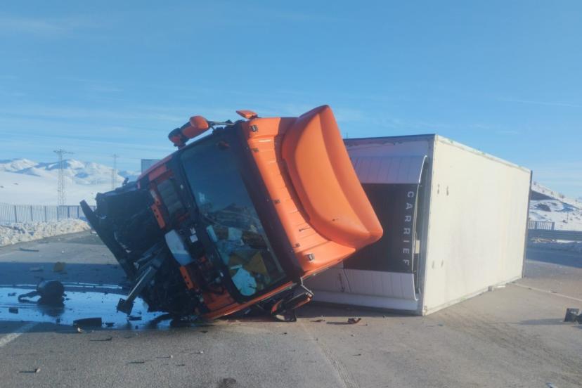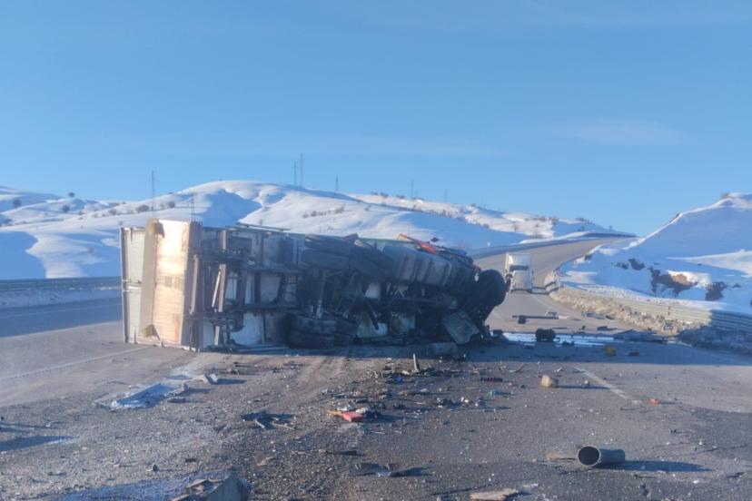 Bingöl’ün Karlıova ilçesinde gıda yüklü tırın devrilmesi sonucu meydana gelen kazada, sürücü yaralandı.