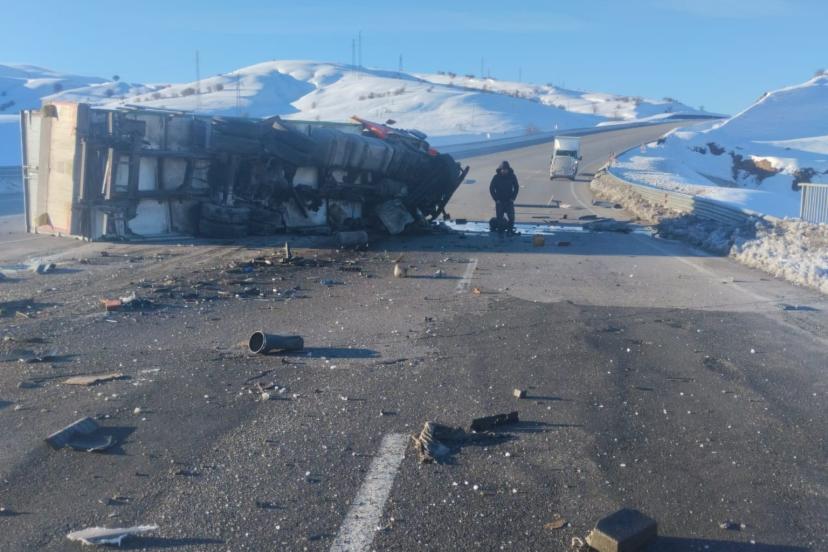Bingöl’de tır devrildi: 1 yaralı