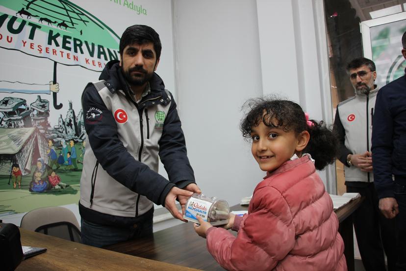 Çeşitli temaslarda bulunmak için Gaziantep'te Umut Kervanında bulunan Umut Kervanı Genel Başkan Yardımcısı Erdal Elibüyük, kumbarasını Gazze'ye bağışlamak isteyen küçük kıza teşekkür etti.