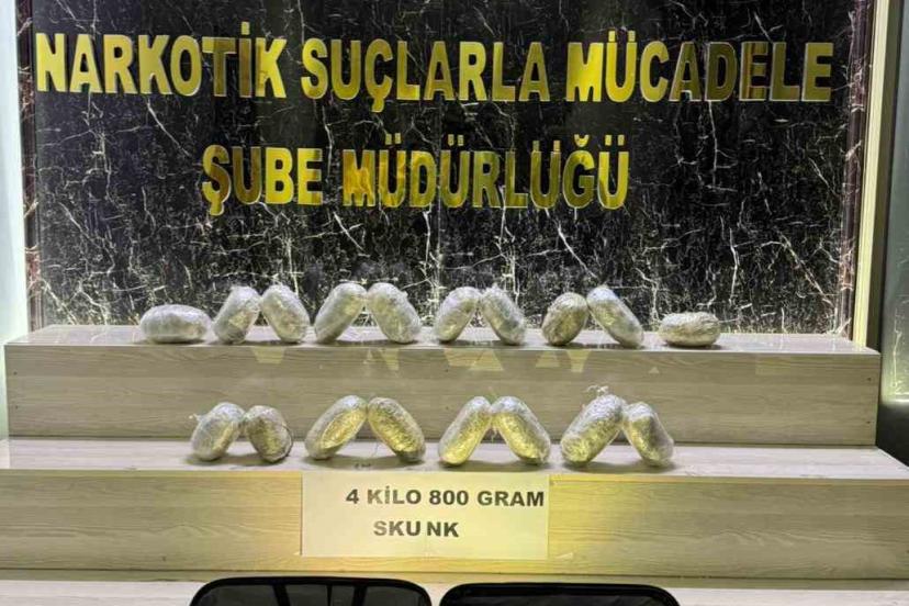 Bitlis Emniyet Müdürlüğü ekiplerince bir yolcu otobüsünde yapılan aramada 4 kilo 800 gram skunk maddesi ele geçirildi.