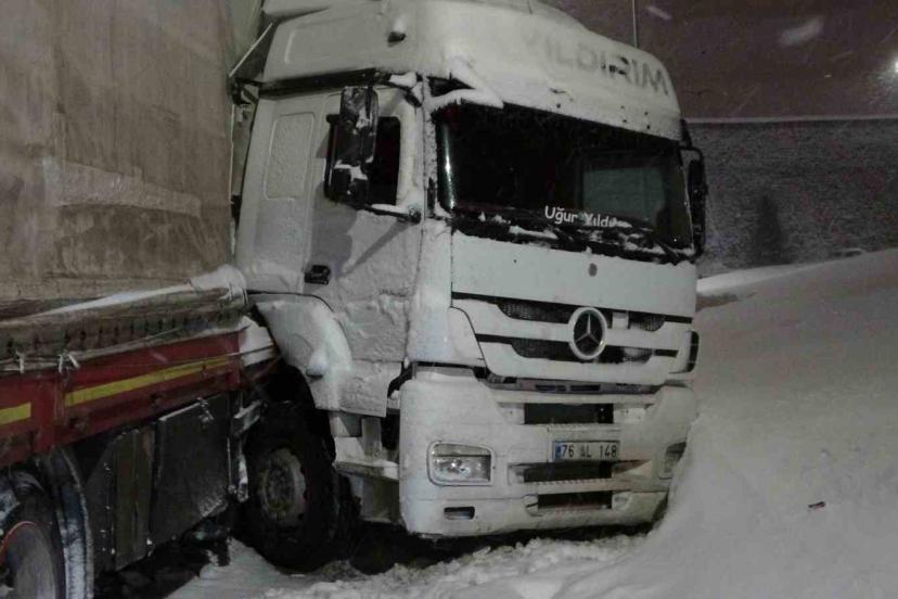 Bitlis’te etkili olan yoğun kar yağışı ve buzlanma, trafik kazalarını da beraberinde getirdi. Kayganlaşan yollarda ilerlemekte güçlük çeken bir tır, virajı alamayarak yan döndü.