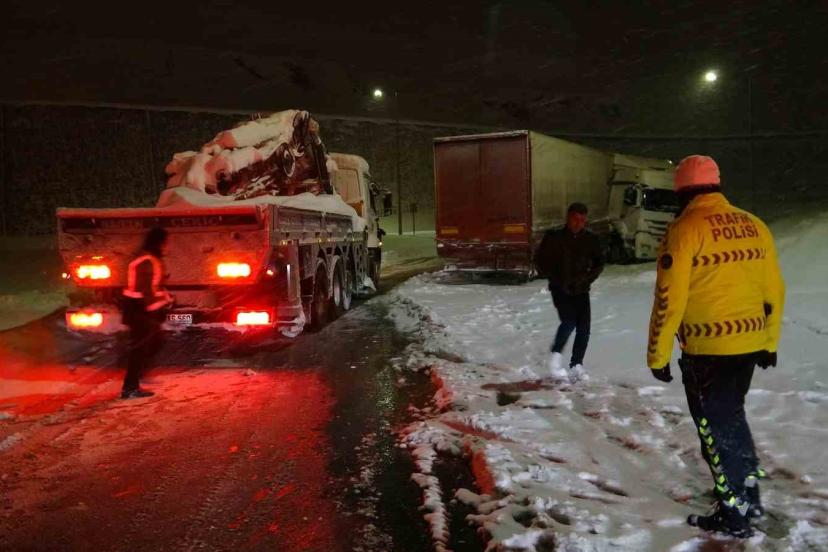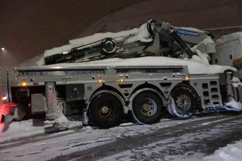 Edinilen bilgilere göre, kar ve buzlanmanın etkili olduğu Bitlis-Baykan karayolunda seyir halinde olan tır, virajı dönmeye çalıştığı sırada kontrolden çıkarak yol üzerinde yan döndü. Olayın ardından bölgeye yardım için çağrılan çekici ise karla kaplı zeminde ilerlemekte zorlanarak kara saplandı. Kısa sürede olay yerine gelen trafik ekipleri, hem yan dönen tırı hem de kara saplanan çekiciyi kurtarmak için çalışma başlattı.