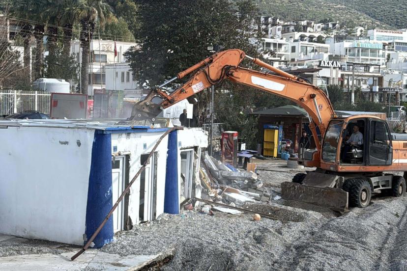 Plajda yıkım ve temizlik çalışmalarının aralıksız devam ettiği belirtilirken, yıkım işlemlerinin yarın Kumbahçe sahilinde sürdürüleceği ifade edildi.