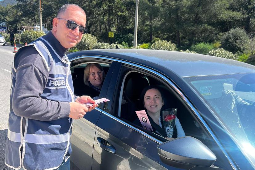 MUĞLA’nın Bodrum ilçesinde 8 Mart Dünya Kadınlar Günü dolayısıyla gerçekleştirilen farkındalık etkinliğinde, polis ekipleri kadın sürücü ve yolcuların gününü kutlayarak Kadın Destek Uygulamasını (KADES) tanıtıp, karanfil dağıtıldı.
