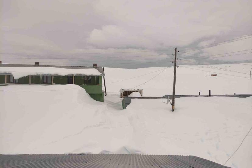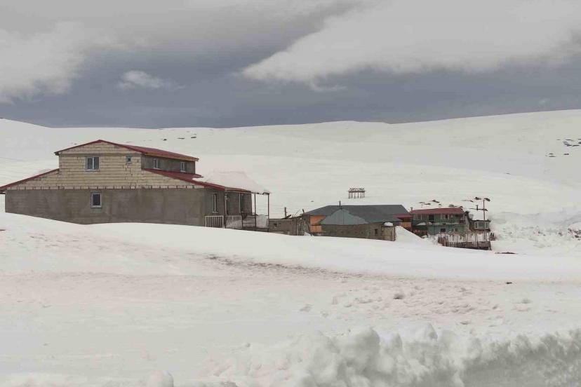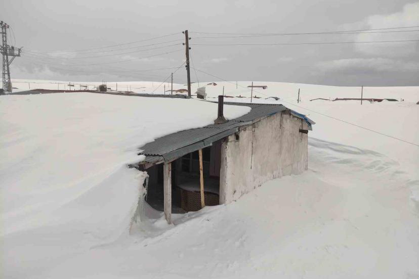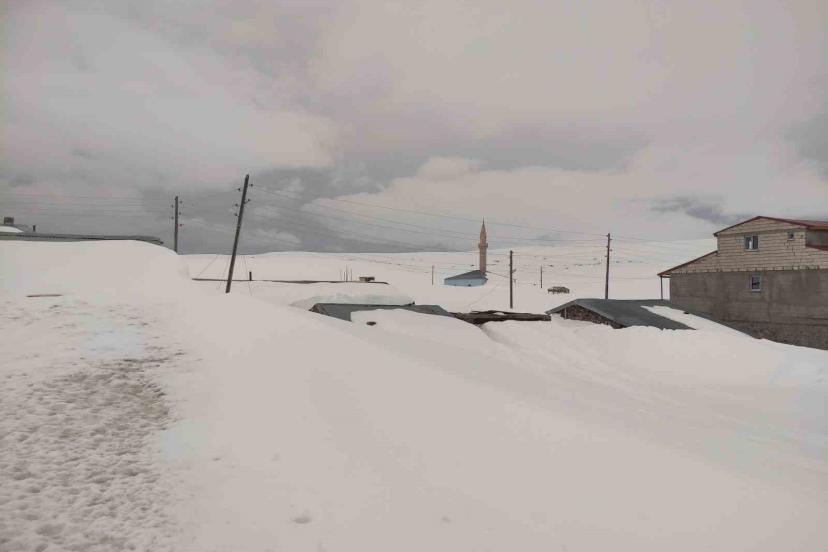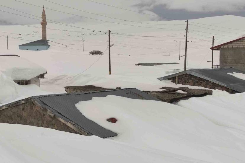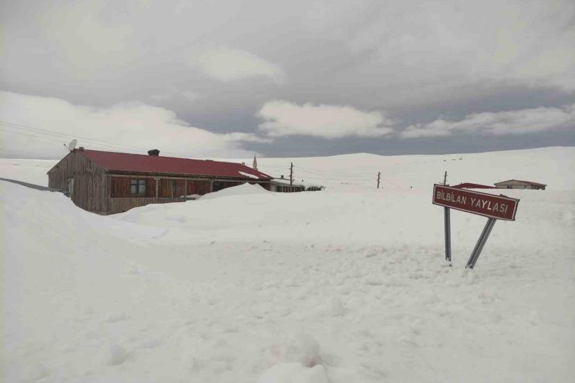 Kışın yoğun kar ve fırtınanın etkisiyle tamamı karla kaplanan Ardahan’ın 2 bin 581 rakımlı Bülbülan Yaylası’ndaki ev ve iş yerleri nisan ayında hala kara gömülü.