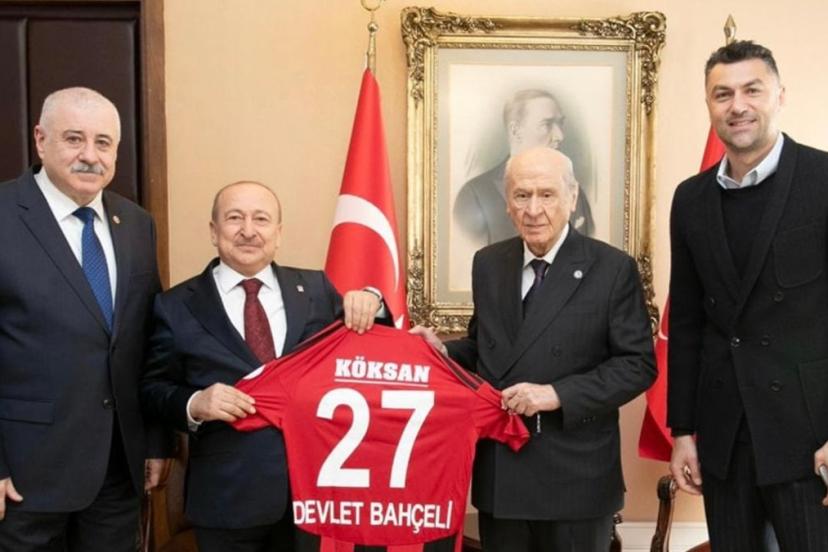 Gaziantep FK Başkanı Memik Yılmaz ve teknik direktörü Burak Yılmaz, Bahçeli'yi ziyaret etti.
