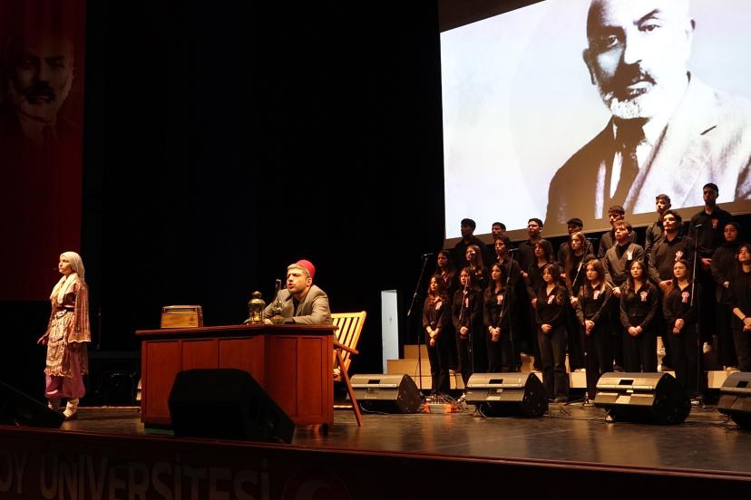 MAKÜ Konferans ve Sergi Salonu'nda düzenlenen programa Vali Tülay Baydar Bilgihan, Cumhuriyet Başsavcısı Harun Ünlüsoy, Belediye Başkanı Ali Orkun Ercengiz, Baro Başkanı Meltem Özdemir ile öğretmenler, öğrenciler ve veliler katıldı. Saygı duruşu ve İstiklal Marşı'nın ardından konuşan Cumhuriyet Anadolu Lisesi Müdürü Ozan Kara, "İman ve inançla Mehmet Akif'in gönlünden diline düşen mısralar ve bu mısraların anlamları alelade cümleler değil, soğuk odada tahta masada sarı saman kâğıdına yazılan, gecenin karanlığında duvara kazınan incilerdir. Meclis kürsüsünde defalarca okunan, dokundukça yüreklerde körüklenen bir ateş, dalga dalga Anadolu'ya yayılan alevdir. Dünya var oldukça, bağımsızlığımızın sembolü olan bayrağımızın gölgesinde, marşımız söylenecek ve bayrağımız özgürce dalgalanacak" dedi.