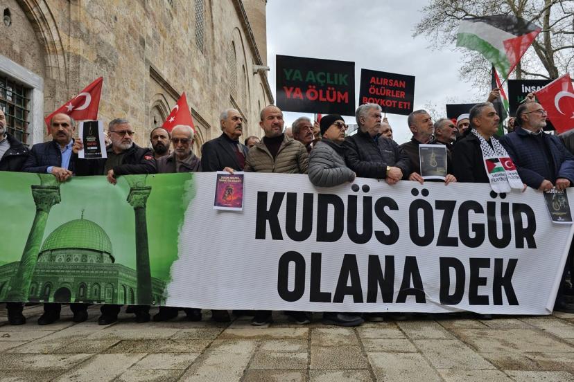 Mescid-i Aksa'nın ibadete kapatılması ve işgal rejimin Filistinli mahkumlar için idam yasasına yönelik uygulamalara tepki göstermek amacıyla Bursa Gönüllü Kuruluşlar Platformu tarafından kitlesel bir basın açıklaması düzenlendi.