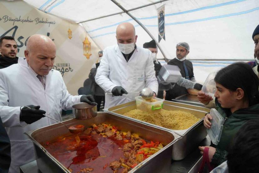 Erzurum Büyükşehir Belediyesi olarak sosyal yardımlarının artarak devam ettiğini ve Ramazan ayı münasebetiyle daha da yoğunlaştıklarını dile getiren Başkan Sekmen, "Vatandaşlarımızın hem iftarlık hem de sahurluk üç çeşit yemek ihtiyaçlarını veriyoruz. Büyükşehir Belediyesi olarak 5 bin kişiye iftar veriyoruz. Bunun yanı sıra Suriye’deki vatandaşlara da iftarlık ve sahurluk programlar organize ettik. Oradaki hizmetlerimiz de devam ediyor. Ayrıca kuru gıda ve sebze ihtiyacı olan vatandaşlarımıza da fiş vererek marketlerimizden alışveriş yapmalarını sağlıyoruz. İstiyoruz ki Ramazan gününde kimse açıkta, sıkıntıda kalmasın. Elimizden gelen bütün gayreti var gücümüzle gösteriyoruz. Mübarek Ramazan ayının ruhuna uygun olarak Narmanlı Camii yanında kurduğumuz Aşevi’nde hemşehrilerimizle bir araya gelip iftar yemeği ikramında bulunduk. Birlik ve beraberliğimizi pekiştiren bu anlamlı buluşmalarda, dayanışmanın, paylaşmanın ve kardeşliğin en güzel örneklerini sergiliyoruz. Ramazan, yalnızca oruç tutmak değil; aynı zamanda gönülleri birleştirmek, sofraları bereketlendirmek ve ihtiyaç sahiplerine destek olmaktır. Bu mübarek ayın huzurunu hep birlikte yaşarken, tüm vatandaşlarımıza sağlık, mutluluk ve bereket dolu günler diliyorum. Rabbim tuttuğumuz oruçları kabul eylesin" şeklinde konuştu.