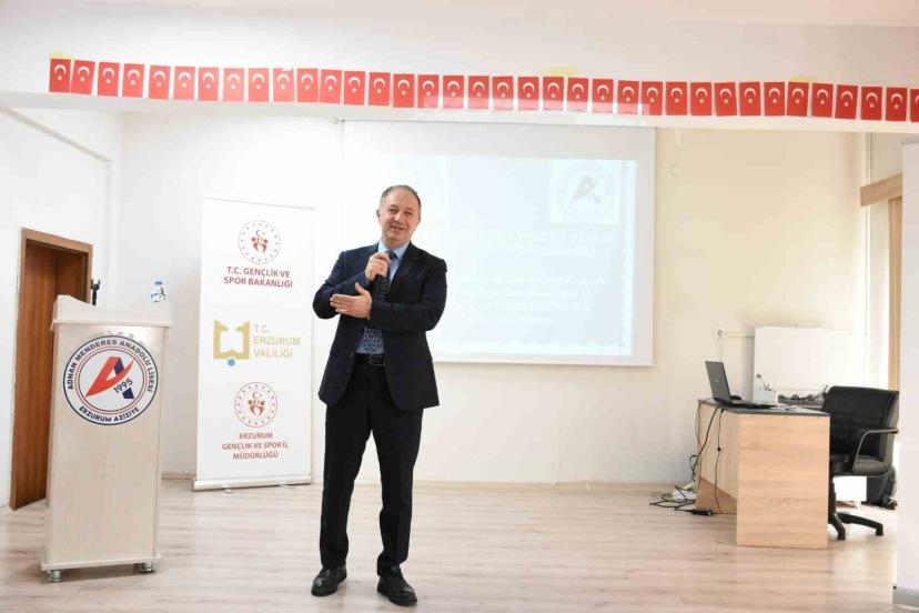 Erzurum Gençlik ve Spor İl Müdürü Levent Çakmur Adnan Menderes Anadolu Lisesi öğrencileriyle ‘Tecrübe Paylaşımı’ adlı söyleşide buluştu.