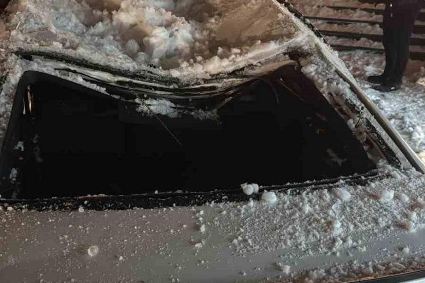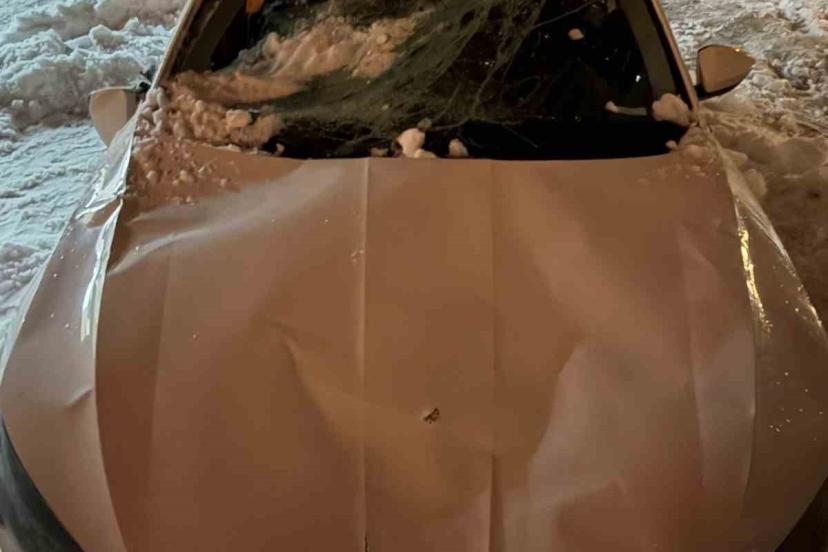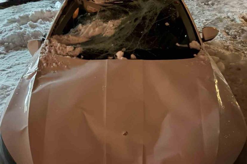 Çatıdan düşen kar kütlesi otomobili kullanılamaz hale getirdi
