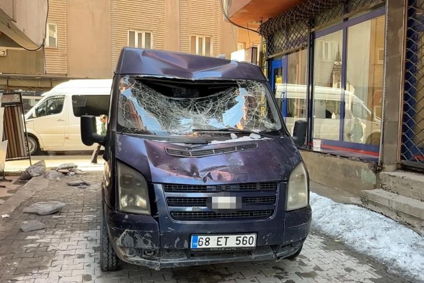 İpek Mahallesi Hacı Ömer Sabancı Caddesi’nde ilerleyen Şahap Aybar yönetimindeki 68 ET 560 plakalı minibüsün üzerine, bir binanın 7’nci katından kar kütlesi düştü. Olayda yaralanan olmazken, kar kütlesinin etkisiyle minibüsün tavanı çöktü, araç kullanılamaz hale geldi. Araç sahibi Şahap Aybar, gazetecilere yaptığı açıklamada, seyir halindeyken büyük bir gürültüyle karın üzerine düştüğünü belirterek, "Araç hareket halindeyken 7’nci kattan büyük bir kar kütlesi minibüsün üzerine düştü. Şans eseri kimseye bir şey olmadı ancak aracım kullanılamaz hale geldi" dedi.