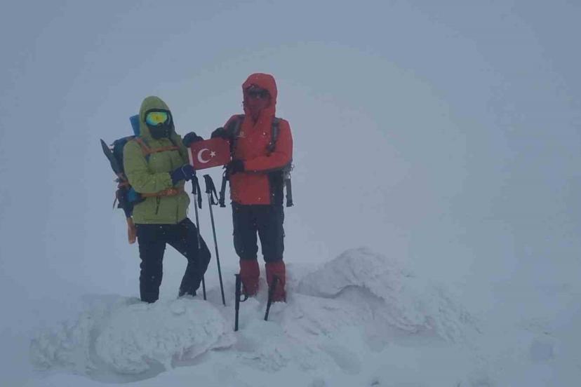Ağrı’da 2 bin 450 rakımdaki Bubi Dağı zirvesine ulaşan dağcılar, kar ve rüzgâra karşı verdikleri mücadeleyi başarıyla tamamladı.