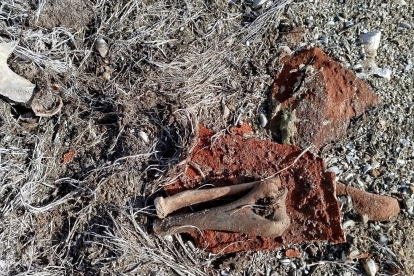 Eğirdir Gölü'nün suyu çekilen kıyı kesiminde insan kemikleri bulunan küpler ortaya çıktı