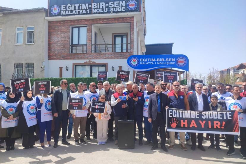 Kitle adına basın açıklamasını okuyan Eğitim-Bir-Sen Malatya 1 No'lu Şube Başkanı Hüseyin Söylemez, Siverek'te bir okula yönelik gerçekleştirilen saldırı ve artan şiddet olaylarına tepki göstermek amacıyla Türkiye genelinde olduğu gibi Malatya'da da bir gün iş bırakma kararı aldıklarını ve kitlesel basın açıklaması düzenlediklerini bildirdi.
