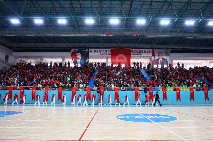 Elazığ’da 23 Nisan Ulusal Egemenlik ve Çocuk Bayramı etkinlikleri, valilik binası önündeki çelenk sunma töreninin ardından Yakup Kılıç Spor Salonu’nda düzenlenen kutlama programıyla sürdü. Yoğun katılımla başlayan program, saygı duruşu ve İstiklal Marşı’nın okunmasıyla start aldı. Elazığ Valisi Numan Hatipoğlu’nun günün anlam ve önemine ilişkin konuşma yaptığı törende, Elazığ Anaokulu ve Koç İlkokulu öğrencileri tarafından hazırlanan ront gösterileri sunuldu. Program kapsamında Koç İlkokulu öğrencileri şiir dinletisi gerçekleştirirken, Koç İlkokulu ve Mustafa Kemal Ortaokulu halk oyunları ekipleri sahne aldı. Geleneksel çocuk oyunları gösterisinin de yer aldığı etkinlikte, 23 Nisan dolayısıyla düzenlenen yarışmalarda dereceye giren öğrencilere ödülleri takdim edildi.