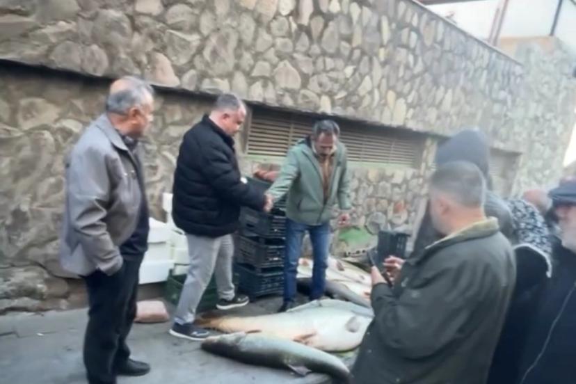 Elazığ’da kurban pazarlığını aratmayan görüntü: Vatandaşlar dev balık için yarıştı