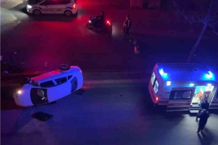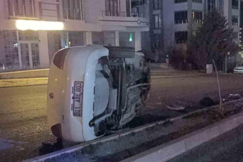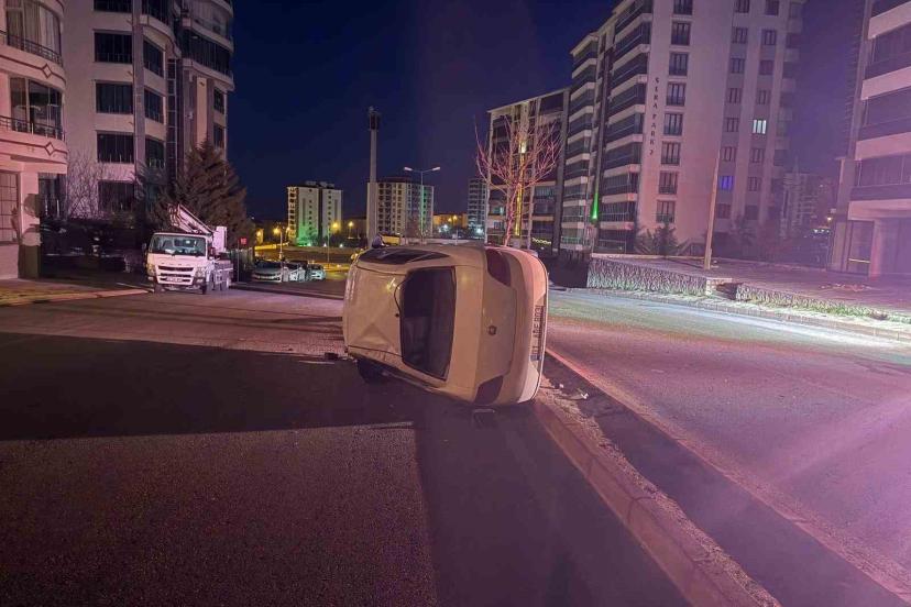 Elazığ’da sürücüsünün direksiyon hakimiyetini kaybettiği otomobil yan yattı, 1 kişi yaralandı.