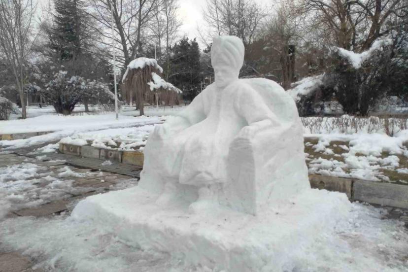 Erzincan’da kar yağışını sanata dönüştüren Güzel Sanatlar Fakültesi mezunu İsmail İşler, klasik kardan adam yerine kardan padişah yaptı.
