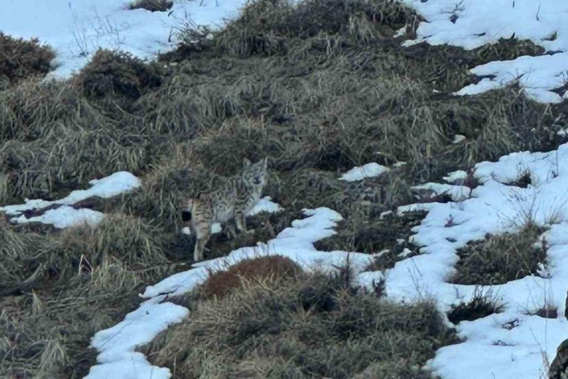 Erzurum’un Tekman ilçesinde karlı arazide vaşak yakından görüntülendi.