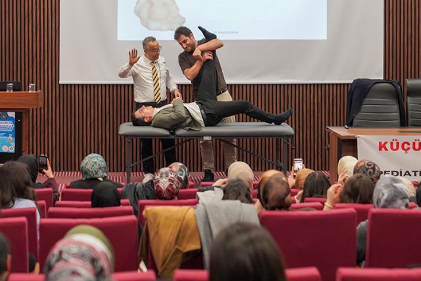 Sağlık alanında öğrenim gören öğrencilerin yoğun katılım gösterdiği programda, pediatrik rehabilitasyonda erken müdahalenin önemi, riskli bebeklerde değerlendirme ve tedavi süreçleri ile çocuklarda görülen duyu bütünlüğü problemlerine yönelik güncel yaklaşımlar ele alındı.